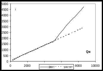 Рис. 16. Зависимость Qн от Qж для скважины №2