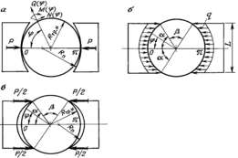 Приложение двух пар сосредоточенных сил. Этот случай соответствует соотношению Rтр.н > Rп. Здесь также в качестве координаты рассматриваемого сечения принят угол .