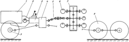 Рис. 17. Кинематическая схема агрегата ПРС легкого типа:1 – ходовой двигатель автомобильного шасси; 2 – насос масляный, входящий в состав силового агрегата шасси; 3 – коробка перемены передач шасси; 4 – коробка отбора мощности; 5 – карданный вал отбора мощности; 6 – насос гидросистемы агрегата; 7 – раздаточный редуктор; 8 – задняя тележка шасси; 9 – передний мост шасси.