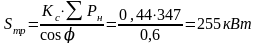 где cosφ – для проходческих участков равен 0,6 (по справочнику).