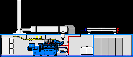 Контейнер разделен на машинное отделение, помещение для камеры сжигания и помещение для распределительного устройства. В машинном отделении находится насос по отсасыванию газа. К распределительному устройству относится и комплект автоматического регулирования компрессора, камеры сжигания, а также техника для анализа газа. В каждое из отделений можно попасть снаружи через отдельную дверь.