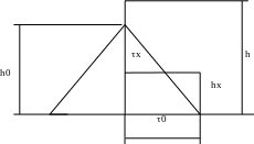 hx - высота оборудования; h - высота вышки с молниеотводом (h=42 м); h0 - высота вышки (h0=41 м); τх - радиус зоны защиты на уровне высоты оборудования; τ0 - радиус зоны защиты на земле.