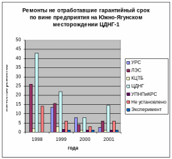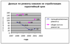Из рисунка 5.2 видно, что количество скважин не отработавших гарантийный срок в период с 1998 по 2001 год значительно сократилось.