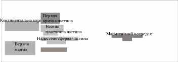 Мал. Модель глибинної будови "зрілої" континентальної рифтової зони в поперечному розрізі.
