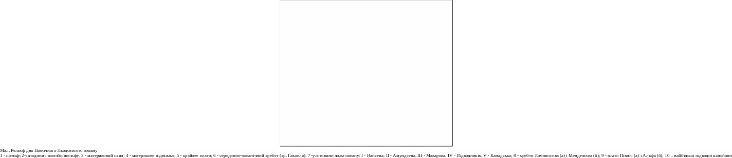 2.1.4 Північний Льодовитий океан оточує Північний полюс. Він омиває північні береги Європи, Азії та Північної Америки й з'єднується звуженими протоками з Атлантичним і Тихим океанами. Площа Північного Льодовитого океану близько 13,1 млн. км2 [3].