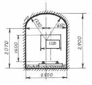 Рис. Типовое сечение однопутной прямоугольно-сводчатой формой с локомотивной откаткой породы