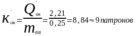 Из условия размещения в шпуре целого числа патронов, количество патронов в каждом шпуре принимаем: