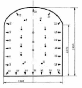 Забои оконтуривающих шпуров, пробуренных вдоль боковых стенок и кровли выработки, должны выступать за контур проектного сечения на 5÷10 см, так как коэффициент крепости по М.М. Протодъяконову f=16.