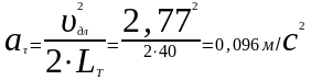 В соответствии с ПБ тормозной путь на преобладающем уклоне при перевозке грузов 40 м. Отсюда, приняв, что на участке торможения режим движения поезда равнозамедленный: