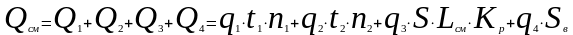 Q1, Q2, Q3, Q4 – расход воды (л) на промывку при бурении шпуров на одну бурильную машину, на обеспыливание при взрывных работах, погрузке горной массы, при производстве геологической документации;