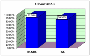 По всем объектам отмечается высокая успешность ГРП в разрезе 2 типа (ПК,СПК): АВ13 - 98.5%, АВ2-3 - 92.2%, БВ10 - 98.2%. В скважинах, вскрывших разрез с присутствием ГСК, успешность оказалась несколько ниже: АВ13 - 85.7%, АВ2-3 - 86.3%, БВ10 - 90%.