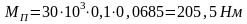 Определяется необходимый момент, который возникает при работе долота по формуле: