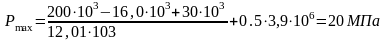 /5/. Определяем растягивающие напряжения в верхнем сечении колонны