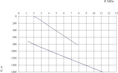 Глубина спуска насоса из условия равенства давления на приеме насоса давлению насыщения составляет 1350 м.