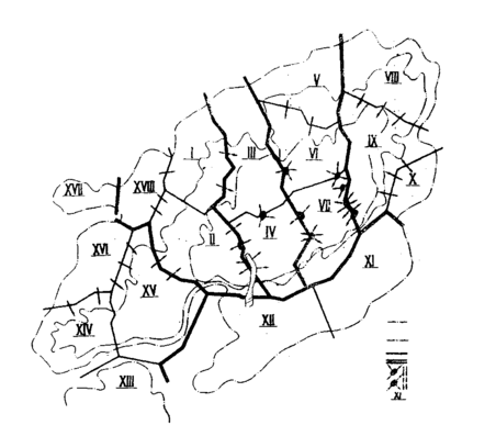 В результате развития системы заводнения пласта DI в пределах залежи образовалось 18 блоков разработки, границами которых являются ряды нагнетательных скважин (рисунок 2). Эти ряды образованы не сразу, а в процессе разработки, и поэтому определение выработки этих блоков по накопленному отбору нефти из них не будет корректным. До разрезания залежи на блоки в ней, как в единой гидродинамической системе преобладали фильтрационные потоки, направленные от периферии к центру. И в этот период часть запасов нефти периферийных блоков отбиралась скважинами центральных блоков.