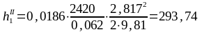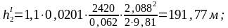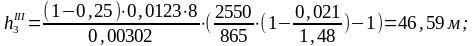 Втрати напору на гідравлічні опори при русі рідини в кільцевому просторі на кожній швидкості агрегата визначається за формулою:
