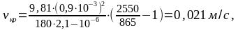 υкр – критична швидкість падіння зерен піску в промивальній рідині, м/с