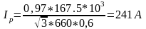 Рабочий ток в магистральном кабеле определяется по формуле № 122.