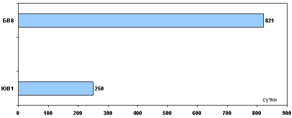 Как видно из таблицы 2.1, самое большее количество наработки на отказ – 821 суток приходится на фонд скважин с УЭЦН, работающих на пластах группы Б8. Наименьшее количество суток отработано на скважинах пласта Ю -250 суток.
