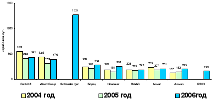 Рассмотрим сравнительную наработку на отказ отечественных и зарубежных насосов. Как видно из диаграммы на рис.2.4, на предприятии используются ЭЦН различных отечественных и зарубежных фирм-производителей: «Борец», «Новомет», «Лемаз», «Алнас», Centrilift, Schlumberger и др.