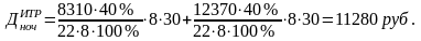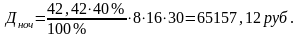 Определяем сумму доплаты за работу в ночное время по формуле: