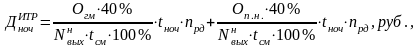 Определяем сумму доплаты ИТР за работу в ночное время по формуле: