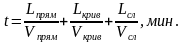 Vпрям ,Vкрив, Vсл - скорость движения вагона на различных участках выработки, м/мин;