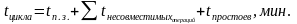 tпростоев – длительность простоев неучтенного оборудования (магистрального транспорта, вентиляторов и др.), 1-2, мин.