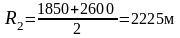 2 = R1 /57,3 = 70034/57,3 = 415,4 м