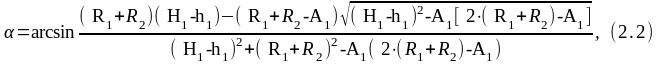 где A1 = A+R2 (1-cos к)=1500+2225(1-cos200)=1634 м
