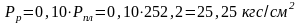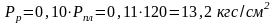• превышение гидростатического давления над пластовым (репрессия) 10-15%, принимается равным 15%: