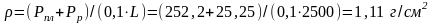 Плотность бурового раствора для бурения интервала 2500-2650 м принимается 1,10 г/см3.