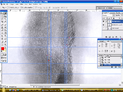 На реальных следах выявлялись частные признаки кожных покровов тела человека, которые затем переносились на изображение путем применения инструмента Кисть, точками красного цвета. В центр отмеченных таким образом признаков выставлялись вертикальные и горизонтальные направляющие, пересечение которых являлось центром признака со своими координатами. Координаты признаков записывались от самой верхней до самой нижней точки. Затем рабочий слой становился невидимым, а нижележащий активным, при этом пересечения направляющих переносятся в место нахождения признака на нижележащем слое. Однако могут быть смещения. В этом случае, не изменяя положения направляющих, совмещается пересечение с одним из признаков, а затем вносятся корректировки. Значения точек пересечения координат были сведены в таблицу 1.