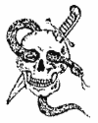 | Череп, кинжал, змея, ветка розы, деньги -длительное время занимался кражами, грабежами, разбоями; неоднократно судим; «вор в законе». Наносится на грудь. | |