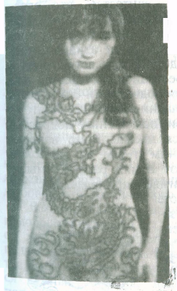 | Обнаженная женщина, обвитая змеей (варианты могут быть самые различные) - обозначают пассивного гомосексуалиста. Татуировка наносится насильно или проигравшему в карты, но иногда по собственному желанию. Место татуировки - только спина! |