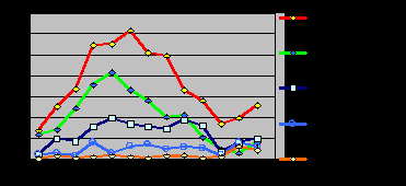 Согласно количественным показателям, наиболее существенные всплески криминальной активности личного состава ОВД в период 1993-1997 гг. происходили за счет совершения фактов взяточничества и превышения служебных полномочий, показатели которых за указанный период возросли более, чем в 2,5 раза. Эти же виды правонарушений имеют тенденцию к росту в последние 3 года (рис. 15)