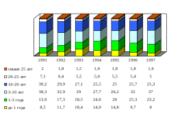 На рис. 26, где приведено распределение аттестованных сотрудников милиции в зависимости от выслуги лет, динамика омоложения личного состава прослеживается более наглядно.