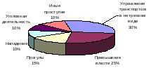 На сегодняшний день в структуре преступности сотрудников ОВД Российской Федерации преобладают правонарушения общеуголовной направленности. Если в начале 1990-х гг. число общеуголовных преступлений составляло 1/3 всех посягательств, то уже в 1998 г. за общеуголовные преступления к ответственности было привлечено 56,2% всех осужденных сотрудников. Рост числа убийств за 1992-1998 гг. составил 11%, грабежей и разбоев – 10%, количество изнасилований возросло в 3 раза, тяжкого вреда здоровью – в 2,4 раза.103