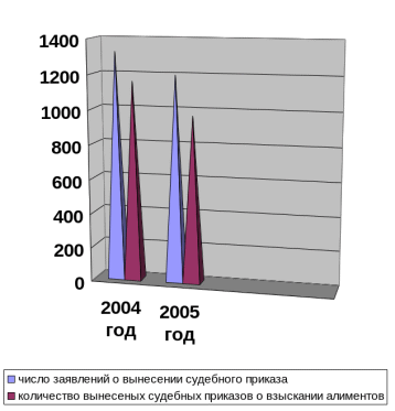 В 2005 году на рассмотрение мировым судьям г. Якутска поступило 4238 заявлений о взыскании алиментов, из них:
