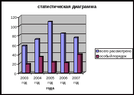 Статистическая диаграмма рассмотренных уголовных дел в Кологривском районном суде Костромской области за период с 2003 по 2007 г. г.