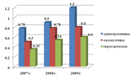 Объемы выплаченных ежемесячных пособий в 2008 году так же увеличились но, на 56%, а в 2009 году на 2,5%. Объемы периодических социальных выплат так же имеют тенденцию к росту в течение всего анализируемого периода. В 2008 году их рост составил 54,2%, а в 2009 году 11,1%. Всего, в 2007 году было выплачено социальных выплат на общую сумму 1,3 млн. руб. в 208 году – 2,2 млн. руб. в 2009 году – 2,6 млн. руб.