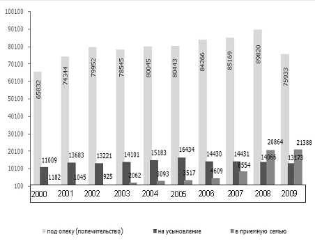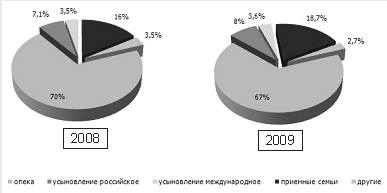 Устройство детей оставшихся без попечения родителей в 2009 году