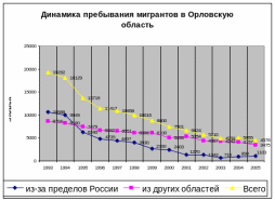 Сегодня миграционная ситуация в государстве в целом и в Орловской области, в частности, находится под пристальным вниманием. Это связано с демографическими проблемами с одной стороны и с расширением социально-экономических возможностей с другой. Известно, что трудоспособное население в Орловской области уменьшается, и уже в ближайшем будущем это может негативно сказаться на росте экономики с вытекающими отсюда последствиями.