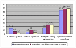 Доминирующими остаются факторы возвращения к прежнему месту жительства, а так же личного и семейного характера, которые составляют 83-93 % от числа уехавших.