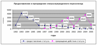 При этом следует иметь в виду, что ходатайствовали по поводу получения статуса лишь 41,4% имевших на это право иммигрантов. Причём такая тенденция характерна для всего анализируемого периода, что даёт основание утверждать о наличии у части из них собственных средств на жилищное обустройство.