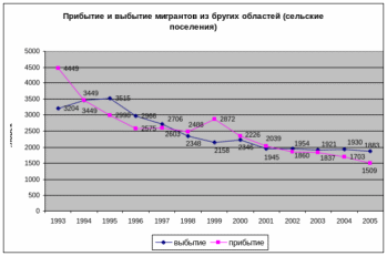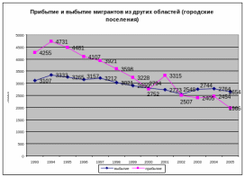 В последние годы складывается достаточно устойчивая тенденция уменьшения внутриобластной миграции населения, необходимой для развития экономики. Отчётливо прослеживается процесс выезда жителей из районов с менее привлекательной социально - экономической ситуацией в наиболее благополучные. Среди последних Орловский, Урицкий, Ливенский, Свердловский, Кромской районы. За 2003-2005 гг.17 территорий "потеряли", а 10 "приобрели" 1742 человека. Причем 45,4 % из них приходится на Орловский, 12,3% - на Ливенский, по 9% - на Свердловский и Урицкий районы, став, тем самым, своего рода зоной "поглощения" внутриобластных мигрантов.