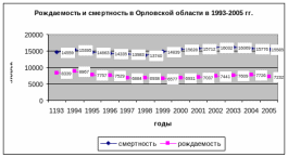 В 2005 г. превышение смертности над рождаемостью характерно для страны и, в частности, для Орловской области (таблица 13).