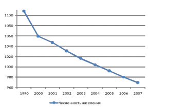 Рисунок 1. График численности населения Курганской области в 1990г. и с 2000г. по2008г., тыс. человек