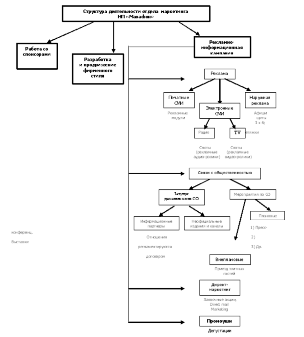 Схема: Структура деятельности отдела маркетинга Сибирского международного марафона.