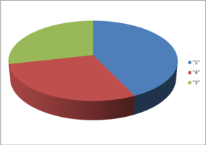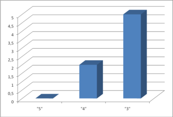 После проведения уроков, построенных на лингвокультурологическом материале, мы получили такие результаты: 2 ученика усвоили материал на «4» и 5 учеников – на «3». Это мы видим на диаграмме 1.